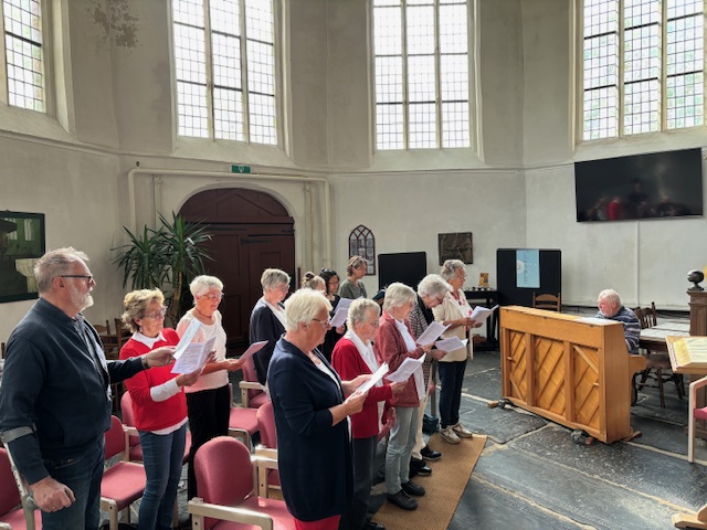 Elke dinsdag, buiten de schoolvakanties om, zingen we liederen voor ons plezier en repeteren we voor de zangdiensten. Dit doen we in het Brakenkerkje in Obdam, van 10.00 - 11.30 uur. Er is altijd tijd voor een sociaal praatje onder het genot van een kopje koffie vóór en ná het oefenen.