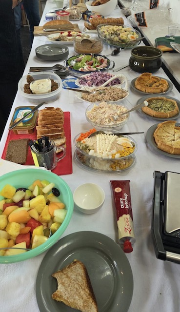 Daarna hebben we de potluckmaaltijd gebruikt. Er was een heel divers aanbod van prachtige thuisgemaakte creaties, heerlijke soepen, tosti’s, quiches, tot heerlijke belegde kadetjes. We hebben genoten van een heerlijke maaltijd en van het ontspannen samenzijn.